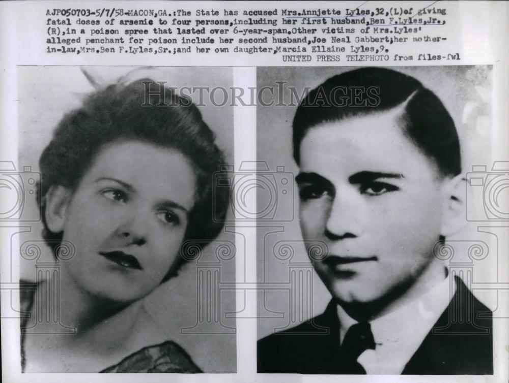 In the middle of the Bible Belt, Macon, Georgia, widow Mrs. Anjette Lyles suffered a series of tragedies. She owned a courthouse restaurant, which was incredibly popular among judges and attorneys in Macon in the 1950's. She was twice widowed and in 1958 found herself living with her elderly former mother-in-law and two young daughters in the more affluent suburbs. Then suddenly, her apparently healthy mother-in-law got sick and died after several days later in the hospital. The Coroner attributed her death to heart disease at age 52. The elderly woman had heart disease but no symptoms. She left a $100,000 estate to be split between her daughter-in-law and surviving son.